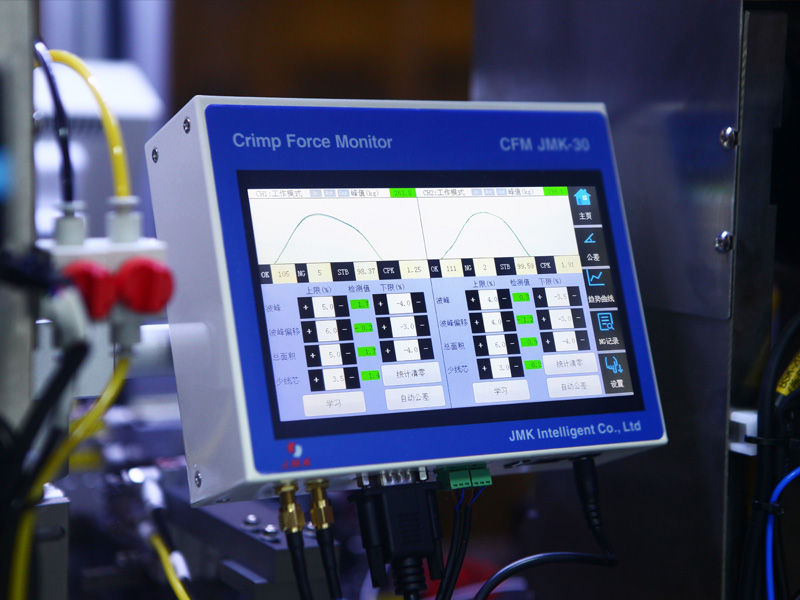JM-601B+可選裝壓力監(jiān)測和CCD視覺檢測系統(tǒng),能夠實時顯示產(chǎn)品影像和壓接力曲線,并進行對比分析、壓接不良時會發(fā)出警報并自動分揀出不良品。加工全過程質(zhì)量監(jiān)控,極大地節(jié)省了人工成本,保證產(chǎn)品質(zhì)量,提高了生產(chǎn)效率。